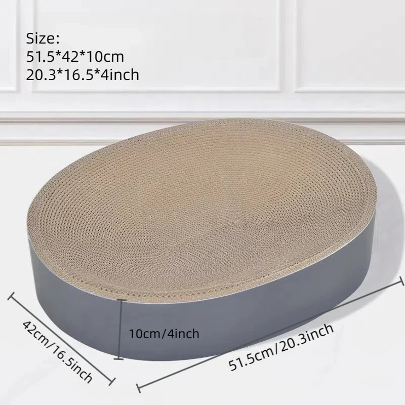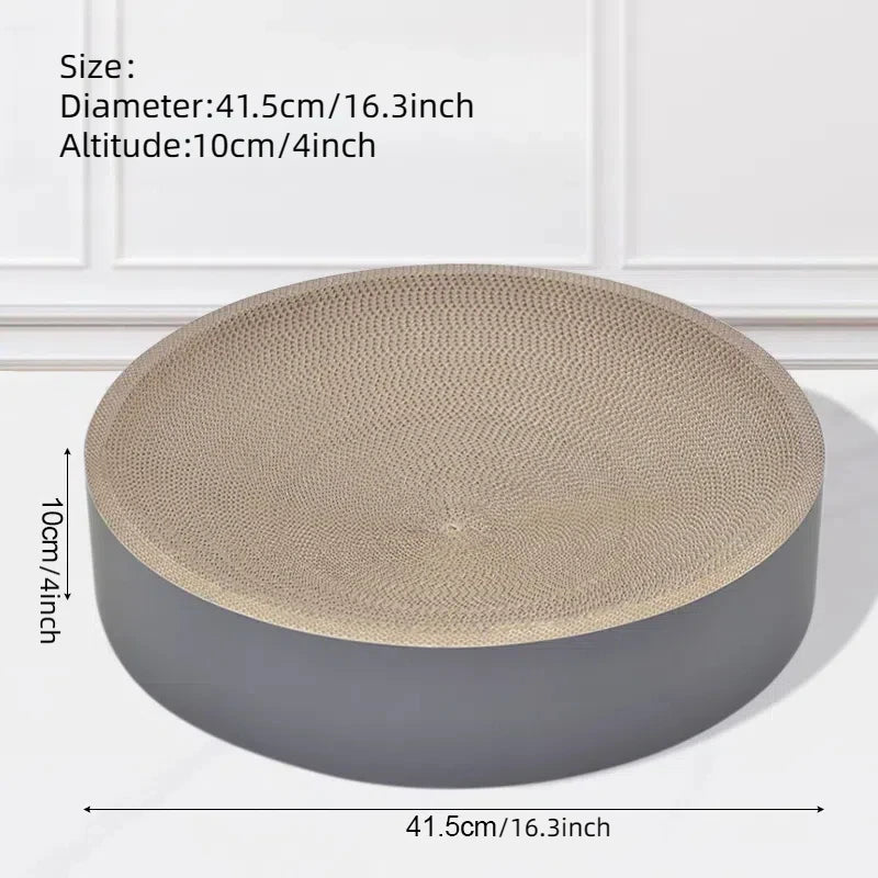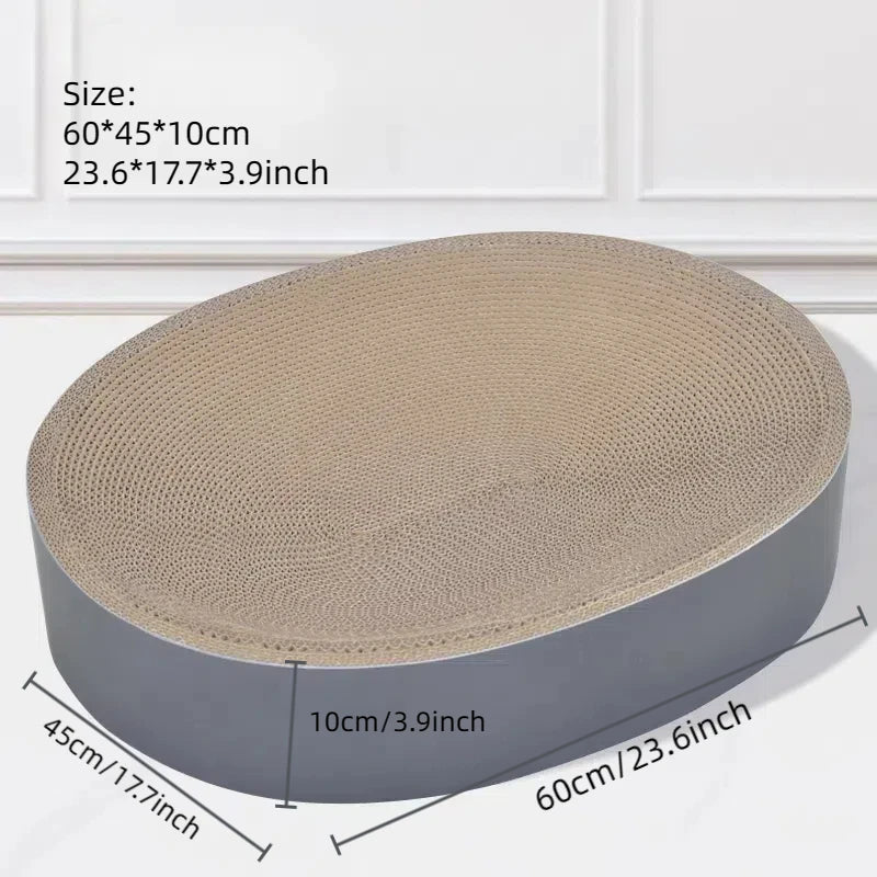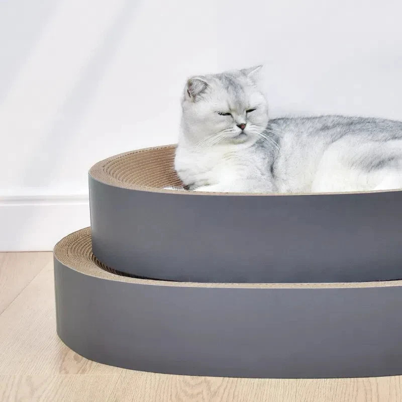 Le panier en carton ondulé offre une surface stable pour l’entretien naturel des griffes tout en servant de zone de repos. La texture en vagues crée un appui agréable pour permettre au chat de s’étirer ou de s’installer confortablement. Le format rond ou ovale laisse le choix selon l’espace disponible dans la pièce.